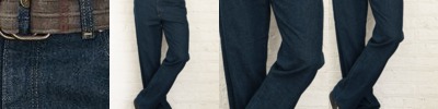 These 100% cotton denim jeans with antique brass rivets and decorative seams help present a casual, down-home image.