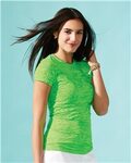 Sporty and trendy at the same time-with a burnout body and sleeves plus solid contrast trim and stripes.