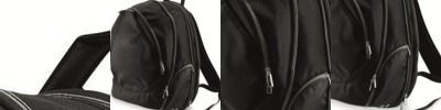 - Front and side zipper pockets