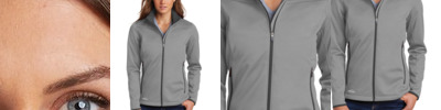 - 100% textured polyester shell with polyester fleece inner zip front and collar trim