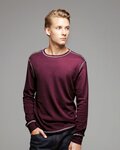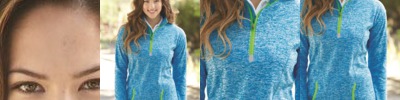 - Contrast color coverstitched neck, shoulders, armholes, and cuffs