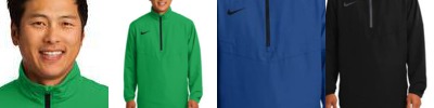 A ½ zip gives this wind-beating essential easy ventilation for time spent on and off the course. Features include front zippered pockets, adjustable cuffs with hook and loop closures and an open hem with drawcord and toggle. The contrast heat transfer Swoosh design trademark is on the right chest. Made of 5.1-ounce, 100% polyester.