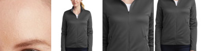 Designed to help keep you warm during cold-weather workouts, this breathable Nike Therma-FIT style manages moisture to perform. Its designed with a zip-through collar, reverse coil zippers, front zippered pockets and open cuffs. Tailored for a feminine fit. The contrast heat transfer Swoosh design trademark is on the left sleeve. Made of 7-ounce, 100% polyester Therma-FIT fabric.**