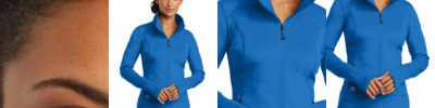 STAY-COOL WICKING STRETCH REFLECTIVE DETAILS 8.6-ounce, 95/5 poly/spandex with stay-cool wicking technology OGIO heat transfer label for tag-free comfort OGIO embossed neck taping Black binding around hood and cuffs Black reverse-coil locking zipper with chin guard Ventilating perforation on center back Reflective O on back right shoulder Front pockets with mesh lining Thumbholes Curved back hem Reflective O on front left hip