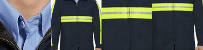 - Self-fabric collar with 8" locking zipper