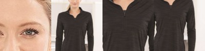 Accept no limits in this high-performance, layerable look. 5.6-ounce, 58/38/4 cotton/poly/spandex jersey with stay-cool wicking technology OGIO heat transfer label for tag-free comfort Self-fabric cadet collar Exposed coil zipper with locking zipper pull Set-in, open hem sleeves Flat matte silicone O heat transfer on back collar Side vents Woven badge with matte silicone O on front left hem Slight drop tail open hem *