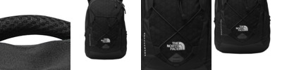 Mid Grey/Asphalt Grey, Monster Blue/Asphalt Grey: 600D recycled polyester, 1200D recycled polyester Rainyday Ivory Dark Heather/TNF Black, TNF Dark Grey Heather/Cardinal Red: 300D recycled heather polyester, 1200D recycled polyester TNF Black: 600D recycled polyester, 600D geo emboss recycled polyester, 1200D recycled polyester FlexVent suspension system Floating padded laptop sleeve in main compartment Front elastic bungee for exterior storage Two mesh water bottle pockets Comfortable, padded top haul handle Sternum strap with whistle buckle Contrast embroidered The North Face logo on front Average weight: 2 lbs. 0.1 oz. (910 g) Volume: 1769 inÿ¿ÿ³ (29 liters) Laptop sleeve: 12'h x 14'd Dimensions: 19.75'h x 13.25'w x 7.5'd Note: Bags not intended for use by children 12 and under.