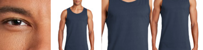 5.3-ounce, 100% cotton 50/50 cotton/poly (Graphite Heather) Recycled, high-performing black tear-away label Banded neck and armholes