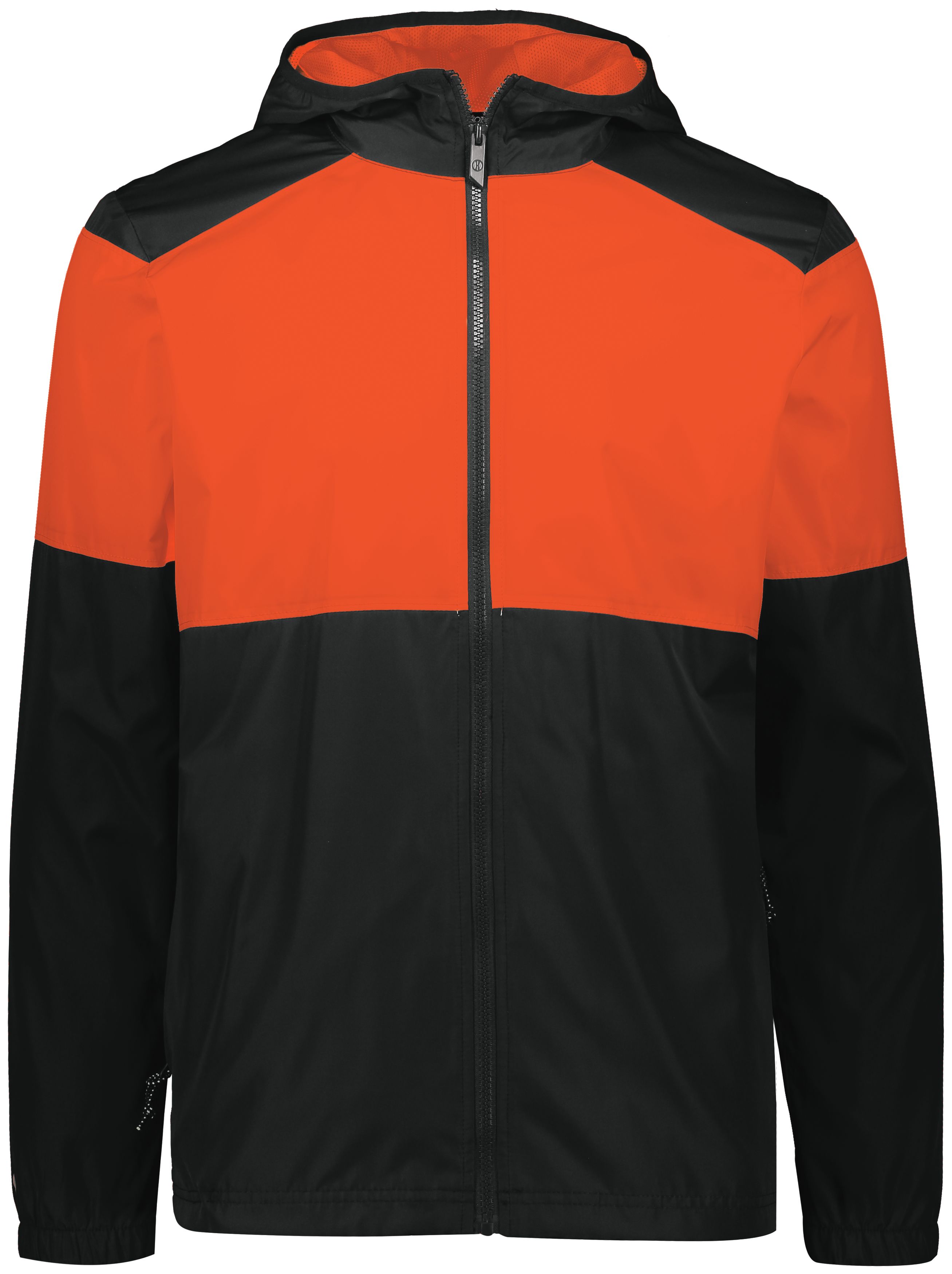 * Micron(tm) polyester is a lightweight, wind/water-resistant fabric * 100% polyester micromesh lining * Embossed inserts for subtle textured pattern * Woven label * Front zipper * 3-piece hood with spandex binding * Set-in sleeves * Front zippered pockets * Elastic cuffs * Adjustable bottom hem with hidden shockcord closure in right pocket (on Adult)