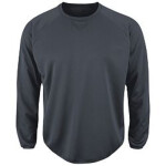 100% polyester crew neck pullover fleece. Home plate insert at neck. Self-fabric cuff.