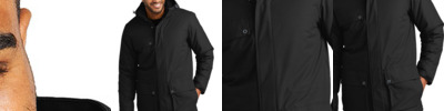 The parka tailored for your everyday excursions. Fully insulated with a durable water-repellent (DWR) finish, it's built to take on the elements and enhance your professional style. 100% polyester canvas with DWR finish Removable, adjustable hood with locking drawcords Shaped exterior storm flap with snap closure Adjustable waist with locking drawcords Two lower front bellowed pockets with flaps and hook and loop closures, side entries Chest pocket with flap and snap closure Interior left chest zippered pocket Adjustable cuffs with hook and loop closures Port Pocket for decoration access Insulation method: 5.3-oz. polyfill in body, 4.4-oz. polyfill in sleeves and hood Water protection method: PU coating and durable water-repellent finish