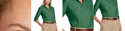 Add a touch of sophistication with this versatile blouse, made from a soft satin fabric featuring a subtle sheen. Designed for a classic fit with traditional flair. 4.1-ounce, 100% polyester satin Anti-static finish Open collar French front placket Inverted box pleat Single-button cuffs Pearlized buttons