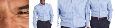 Make a statement with this classic woven shirt, featuring a subtle glen plaid pattern and a comfortable fit. A premium treatment process keeps it wrinkle-free. 4.4-ounce, 96/4 cotton/spandex Button-down collar Left chest pocket Taped seams Pearlized buttons Rounded, adjustable cuffs