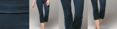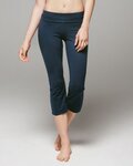 Contoured fit capris have a roll-down waist and slightly flared leg openings.