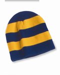 Classic rugby striped knit beanie comes in 16 awesome color combinations.