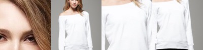 - Wide neckline and ribbed cuffs and waistband