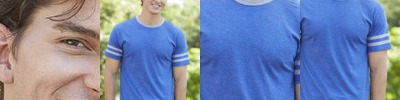 This baseball-style tee has a winning look with contrast raglan sleeves and a shirttail hem. 4.5-ounce, 100% combed ring spun cotton fine jersey 60/40 combed ring spun cotton/poly vintage heathered fine jersey (vintage colors) Side seamed Flatlock stitch ribbed collar and raglan armholes EasyTear label for additional comfort and ability to brand as your own Double-needle raglan 3/4 sleeves Raw serge shirttail hem