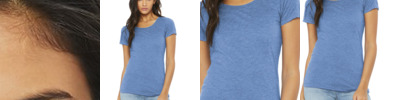 Slim fit Tear-away label Side seamed Triblend Colors: 3.8-ounce, 50/25/25 poly/Airlume combed and ring spun cotton/rayon, 40 singles Black Heather Triblend: 70/15/15 Airlume combed and ring spun cotton/poly/rayon