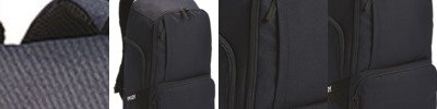 - Three division front pocket. Left, center, and right pocket sections 8" wide