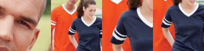- 4.8 oz., 50/50 cotton/polyester knit jersey