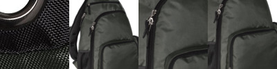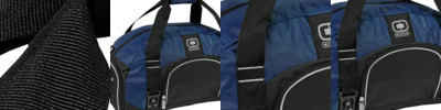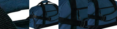 - 600D printed poly; 600D shadow ripstop poly/1,680D poly (Black/Silver)