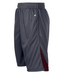 100% polyester • 3.5-oz. • moisture-management/antimicrobial fabric • 9" inseam • contrast inserts with piping on back leg • 2" covered elastic waistband with inside draw cord • deep side pockets • double-needle hemmed legs • heat seal logo on left hip • Sizes: S-4XL