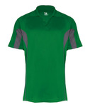 100% moisture management/antimicrobial fabric • Badger sport band shoulder for maximum movement • front & back contrast inserts with piping • three button placket • solid knit collar • tape back neck • vented double needle-hemmed bottom • embroidered Badger logo on back neck • Sizes: XS-4XL
