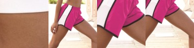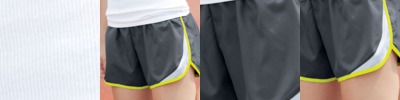90% polyester/10% spandex knit * Odor resistant * Wicks moisture away from the body * Ladies' fit * Heat sealed label * Low rise * Covered elastic waistband * Matching inner short * V-notch at sides * Double-needle hemmed bottom
