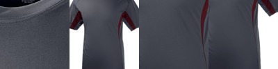 100% polyester • 3.5-oz. • moisture-management/antimicrobial fabric • front and back contrast inserts with piping • self-fabric collar • double-needle hemmed sleeves • heat seal logo on left sleeve • Sizes: S-4XL