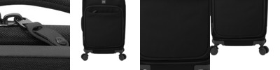 Start your trip off right with this spinner that can handle all your gear, whether you're heading to the beach or the mountains. 600D poly Durable water repellent (DWR) finish Molded back with embossed TM logo Top handle for quick grab and easy lifting Dedicated padded laptop compartment Zippered front pocket can be removed for ease of decoration Large main compartments with compression straps Padded side grab handle 4 spinning wheels for easy maneuvering and increased stability Locking retractable handle Rubberized TM logo Laptop sleeve dimensions: 14'h x 11'w x 1.5'd; fits most 16' laptops Dimensions: 22'h x 14'w x 10'd Capacity: 2.075 cu. in./34 L Weight: 10.6 lbs./4.8 kg Carry-on size (check airline for specific carry-on dimensions) Note: Bags not intended for use by children 12 and under.