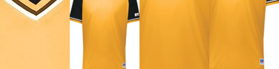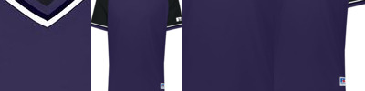- "R RUSSELL" on bottom of left sleeve