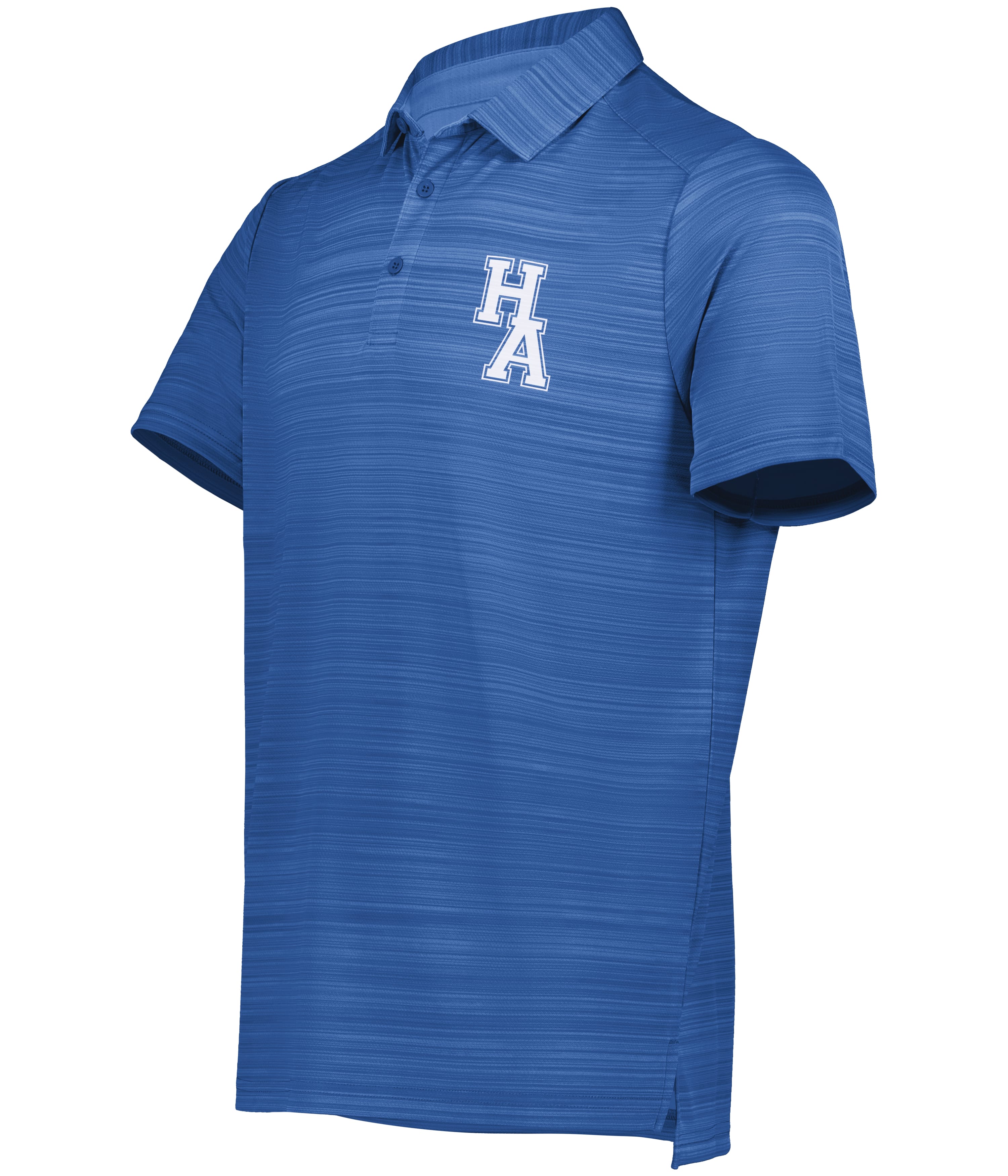 * 100% polyester interlock textured knit with tonal stripe design * Wicks moisture * Tag-free label * Self-fabric collar with collar stay that helps maintain collar shape wash after wash * Box-stitched placket * Three button placket * Set-in sleeves * Side vents