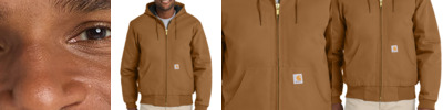 When Old Man Winter and Mother Nature get all riled up, reach for the Duck Active Jac. It can handle what this fearsome twosome dishes out. It's warm, versatile and rugged. 12-ounce, firm hand, 100% ring spun cotton duck canvas 100% polyester filling Wind Fighter ® technology tames wind Quilted-flannel lining in body, quilted-nylon lining in sleeves Attached quilted-flannel-lined three-piece hood with drawcord closure Full-length brass front zipper Two interior pockets: one zippered, one hook and loop Two large hand pockets Locker loop Rib knit cuffs and waistband Carhartt-strong, triple-stitched main seams Carhartt label sewn on left pocket Carhartt Warmth Rating Earned: Level 3â¿¿Warmest Loose fit