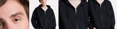 - 1x1 ribbed collar, cuffs, and waistband