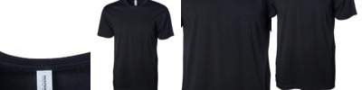 4.45-ounce, 100% US cotton 90/10 cotton/polyester (Sport Grey) Non-dyed fabric with visible specks of fibers and cotton seeds (Natural) Narrow width, rib collar Taped neck and shoulders Modern classic fit, seamless body Recycled, high-performing black tear-away label