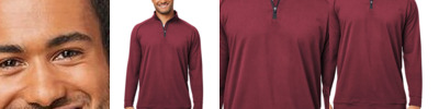 6 oz./yd², 90/10 polyester/spandex Full Stretch Durable Performance with minimalist design for on and off the course Quarter-zip with accent color on collar stand