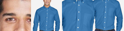 - Fine yarn-count shirting with pearlized buttons