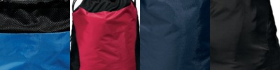 210 denier nylon Mesh top for ventilation Bottom piping for shape retention Reinforced corners Black drawcord Dimensions: 17.5"h x 15.25"wNote: Bags not intended for use by children 12 and under. Includes a California Prop 65 and social responsibility hangtag.