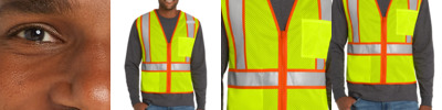 Two-tone contrast fabric under the reflective tape makes this breathable mesh vest stand out on the jobsite.