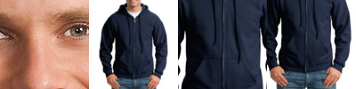 preshrunk 50% cotton/50% polyester • 7.75-oz. • air-jet yarn for softer feel and no pilling • single-ply hood without drawstring • overlapped fabric across YKK nylon zipper allows full front printing • pouch pockets • double-needle stitching throughout • 1x1 athletic rib with spandex • quarter-turned to eliminate center crease • CPSIA tracking label compliant • Sizes: S-XL