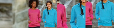 55% cotton/25% metallic yarn/20% polyester French terry • 8 oz. • glitter knit and cover-stitched throughout • 2x1 rib-knit cuffs • waistband and pocket openings • extended back length • Sizes: S-2XL